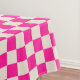 A pink and cream checkerboard pattern covers the entire image, creating a vibrant, energetic feel. The repeated squares are evenly arranged.