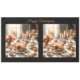Acuarela La cena de Acción de Gracias con un pavo tostado de color dorado-marrón centrado en una mesa elegante. Luces suaves a la luz de las velas, que dejan entrever una gran variedad de postres. Una cocina acogedora con decoración rústica crea un ambiente acogedor, realzando el espíritu festivo de la reunión.