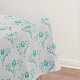 Impresión de bloques florales. Flores blancas y turquesas sobre un fondo gris claro.
