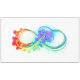 Símbolo infinito multicolor con medusa brillante arcoiris decorado con largos tentáculos sobre fondo blanco. Mariscas arcoiris.