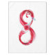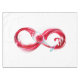 Símbolo infinito de flujo continuo de vino tinto vertiendo en vidrio de vidrio sobre fondo blanco.