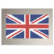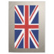 Una colorida bandera azul y blanca del Reino Unido se alza sobre un suave fondo beige sombreado.