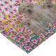 En el fondo de la floración se pueden ver tres cachorros de Labrador con un diseño de pintura al óleo