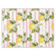 Este encantador mantel de inspiración vintage presenta limones amarillos brillantes con hojas verdes exuberantes y delicadas flores blancas en un marco rústico a rayas rosas y blancas. La paleta de colores suaves y el ambiente nostálgico lo convierten en un lugar perfecto de temporada con un encanto natural intemporal.
