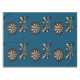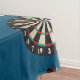 En un fondo azul, la palabra dardos hecha con una imagen de tablero de anuncios y un tablero de pintura debajo de la imagen