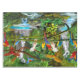 Una selva tropical tropical con las cascadas y el follaje hermosos de la selva proporciona un santuario seguro para estos loros coloridos en paraíso. La foto realista, esta pintura al óleo digital acentúa las mejores imágenes de la naturaleza de nuestros amigos emplumados.