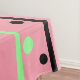 Tela de mesa con motivos geométricos coloridos con puntos de polka verde menta, blanco y negro dentro de bordes rayados verde negro. El fondo es rosa suave. Formas circulares luminosas y modernas en primavera y verano. Diseño original de obras de arte © TamiraZDesigns. www.zazzle.com/tamirazdesigns