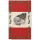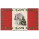 Manteles de vacaciones con una imagen vintage del árbol de Navidad frente a una ventana por la noche y luces de velas brillando.