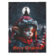 Magia del elfo gótico bajo la luna llena. En la noche silenciosa y nevada, donde la luna arroja su luz plateada sobre el brillante paisaje, se levanta un joven elfo gótico, con sus orejas puntiagudas balancéandose ligeramente en el suave viento. Sus grandes ojos rojos brillan como estrellas de rojo rubí y parecen guardar el secreto de la noche. En su mano sostiene una vela ardiente, cuya llama es cálida y animada, un pequeño punto de luz en la oscuridad helada.