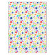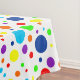 Un patrón de puntos arcoiris de diferentes tamaños sobre blanco.