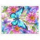 Mariposa azul en un campo de flores, este diseño presenta una hermosa mariposa azul en un campo de flores.
