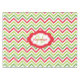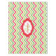 Navidades de rayas de chevron rojas, blancas, limadas y verdes manteles de vacaciones con un banner central enmarcado de blanco y rojo con área de texto rojo para añadir tu apellido, área de texto verde para añadir tu monograma inicial!