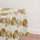 El mantel presenta un ilustracion original de marca de un patrón de setas sobre un fondo de color marrón.