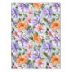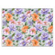Muted watercolor style flower pattern of pink, orange, lavender flowers with green leaves on a mint background.