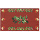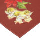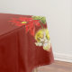 Navidades bailando ángeles bebés colgando de una flor de Poinsettia con fondo rojo para este mantel de fiesta de vacaciones.