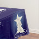 Árbol de Navidad dorado blanco sobre fondo zafiro