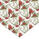 Un cardenal rojo hace festines sobre bayas de mistletoe blancas rodeadas de vegetación Navidad contra fondo blanco de nieve