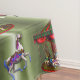 Un colorido mantel de Navidades con un carrusel vintage y caballos de carrusel para darle un toque retro y un ambiente de carnaval a sus Navidades para cenar y entretenerse en esta temporada de vacaciones.
