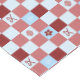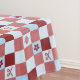 Manteles de cuadros con adorables iconos de Navidades adorables. Cañones de caramelo, copos de nieve, adornos y flores en rosa pastel y azul.