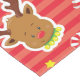 El mantel de Navidades Reindeer and Candy Canes, colorido y divertido, cuenta con un fondo de coral y rayas rojas con renos con narices rojas y latas de caramelo a rayas.