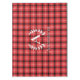 Hermosos colores clásicos de rojo, blanco y negro en un rústico manto de manto, búfalo, tartán patrón. Festividades tradicionales Navidades manteles de vacaciones con nombre de familia personalizable y detalles de marco inicial y hoja. Apreciará la decoración de su casa de campo.