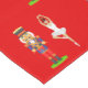 Hermoso soldado vintage y bailarín dibujando sobre el mantel rojo.