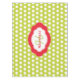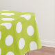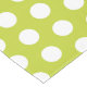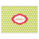 Paquetes de polka blanca sobre el mantel de vacaciones de Navidades de color verde limón con un cartel central de blanco y rojo con área de texto rojo para añadir tu apellido, área de texto verde para añadir tu monograma inicial!