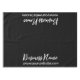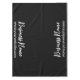 Este mantel negro tiene dos líneas de texto blanco. Puede editar el texto para mostrar un mensaje personalizado como su nombre comercial y su sitio web. La línea superior está en un guión elegante.