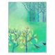 Pintura de dos pájaros negros en un campo verde en primavera. Un sepulcro se acerca a las hojas y está repartido en flor, y al fondo hay algunos árboles en el borde del bosque. Arte original de Nic Squirrell.