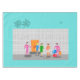 Usted es invitado al evento social del año con este diseño de manteles Fiesta de la Palm Springs Stewardess. Únete a estas tres veteranas aeromozas de las aerolíneas rivales mientras se registran en su kitschy hotel en bloques de brisa de los años 60. Uno de los fabulosos y coloridos botones con un retro uniforme rosado caliente sostiene la puerta del naranja mientras que el otro lucha con el equipaje de las mujeres. Las palmeras verde azuladas se desprenden de un cielo increíblemente turquesa mientras un barco transbordador vuela por encima. Este diseño te hará decir: "¡En tu marca, jet set, ve!"
