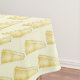 El tablecloth presenta un ilustracion de marca original de una cuña de queso duro: parmesano, grada padano o pecorino romano.