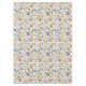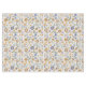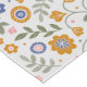 Patrón Boho 01.w. Esta imagen es un patrón sin fisuras que presenta un vibrante diseño floral boho. El patrón se compone de varias flores estilizadas en tonos azules, amarillos y naranjas, intercaladas con hojas y pequeños puntos. El fondo es de un blanco sencillo, lo que permite destacar las flores de colores. La estética general es alegre y lúdica. Los detalles intrincados de los elementos florales crean una sensación de profundidad y textura, añadiendo interés visual. El uso de colores contrastantes añade vitalidad y hace que el patrón sea visualmente atractivo.