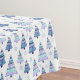 Esta tela de mesa de Holiday tiene un patrón de modernos árboles gráficos navideños. Todos los árboles están decorados en tonos azules, verde azulados, blancos y violetas. Las pequeñas estrellas azules están diseminadas por el patrón, que se coloca sobre un fondo blanco.