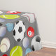 Esta imagen es un patrón colorido y juguetón de varias bolas deportivas. Hay pelotas de béisbol, baloncesto, fútbol, fútbol, voleibol y más. Las bolas están dispuestas en un patrón aleatorio, creando un diseño visualmente estimulante y energético. El fondo es transparente. La imagen está llena de colores brillantes y texturas interesantes, lo que la convierte en un elemento de diseño divertido y atractivo. Todas las bolas están enfocadas y bien definidas, dejando claro que la imagen es de alta calidad. Es un diseño alegre y enérgico para los amantes del deporte.