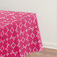 Este mantel presenta un patrón repetido de cuatro corazones rosados alrededor de un rombo rosado central con un borde rosa claro. Este mantel de patrón cardíaco es genial para bodas, celebraciones de aniversario, fiestas de compromiso y eventos El día de San Valentín.