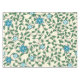 Patrón floral continuo con flores azules, hojas verdes y enredaderas retorcidas sobre un fondo beige claro. El diseño es animado y decorativo.