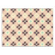 Un patrón geométrico continuo con formas de color crema, beige y verde menta. Los diseños florales marrones oscuros y negritos forman una cuadrícula de diamantes repetida. Ambiente retro.