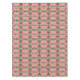 El patrón floral rosado de este mantel se creó a partir de una fotografía original de flores de jatrofa rosada y brotes que florecen en el jardín. La foto de cierre muestra el centro amarillo de la flor en medio de los pétalos rosados. Las hojas verdes de la flor sobre un fondo beige terminan el patrón.