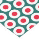 Este divertido y colorido diseño cuenta con unos brillantes círculos rojos enlosados y delineados en blanco sobre un fondo verde azulado.