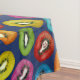 Patrón kiwi de color arcoiris colorido sobre un fondo azul marino.