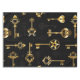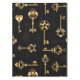 Patrón incomparable de llaves antiguas, doradas y de silueta sobre fondo negro.