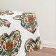 Esta tela de mesa presenta un diseño noruego de estilo Rosemaling Folk Art Heart sobre un fondo blanco.