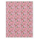 Christmas-themed pattern featuring Santa Claus, reindeer, snowmen, elves, Christmas trees, candy canes, and snowflakes on a pink background