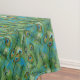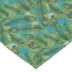 El mantel del algodón mostrado en un color azul con las plumas de un pavo real del bonito imprime.