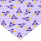 Un patrón de cohetes retro morados y estrellas blancas en un fondo malva.