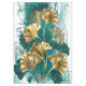 Rama con joyas, oro y hojas verdes de Ginko biloba en luz, fondo verde pintado. Ginko biloba
