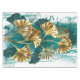 Rama con joyas, oro y hojas verdes de Ginko biloba en luz, fondo verde pintado. Ginko biloba