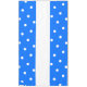 Este divertido diseño deportivo presenta una franja central horizontal blanca ancha con franjas azules brillantes. Grandes y festivos puntos de polka blanca embaldosados recorren las coloridas franjas.