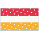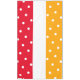 Este divertido diseño deportivo presenta una banda central horizontal blanca ancha con rayas rojas y amarillas doradas que se unen. Los festivos puntos de polka blanco redondo y embaldosado recorren las franjas de borde superior e inferior.