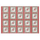 El patrón de fondo rojo y blanco con los bordes de Poinsettia con un pájaro mockingbird en una rama con bayas de invierno crea un diseño único, clásico y atemporal.